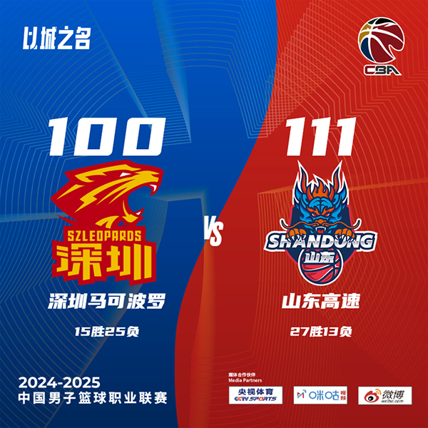 优直播讯北京时间3月15日中国男子篮球职业联赛 常规赛,深圳马可波罗对阵山东高速。半场深圳61-62山东,最终深圳100-111山东。深圳马可波罗马凯尔-约翰逊23分1板6助,特雷沃-汤普森18分8板1助;山东高速马基斯-克里斯31分15板1助,陈培东17分1板1助。