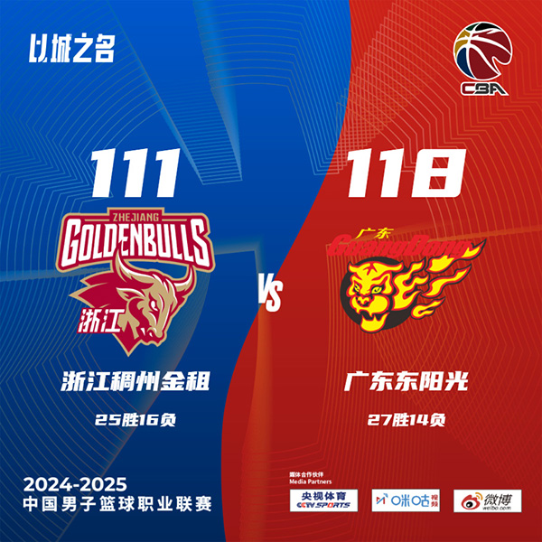 优直播讯北京时间3月16日讯 CBA常规赛继续进行,广东客场挑战浙江,浙江助教鞠鹏场边执教,丁伟担任球队顾问,目前浙江25胜15负位列联赛第8,广东26胜14负排在联赛第6位。首节开打后浙江率先进入状态,琼斯内外结合独得12分,约克连投带罚续上火力,两人联手率队确立优势,首节结束时浙江领先11分,次节回来,浙江进攻出现停滞,广东回敬12-0攻击波蚕食分差,末段贝兹利和伯克连中三分,半场战罢,广东反超1分。短暂休整后广东延续火力内外开花,浙江进攻滞涩未能及时回应,三节结束后广东已经领先10分,末节决战,场上形势风云突变,约克无人可挡予取予求,浙江一度反超比分,但伯克连投带罚守住胜果,最终广东118-111力克对手。