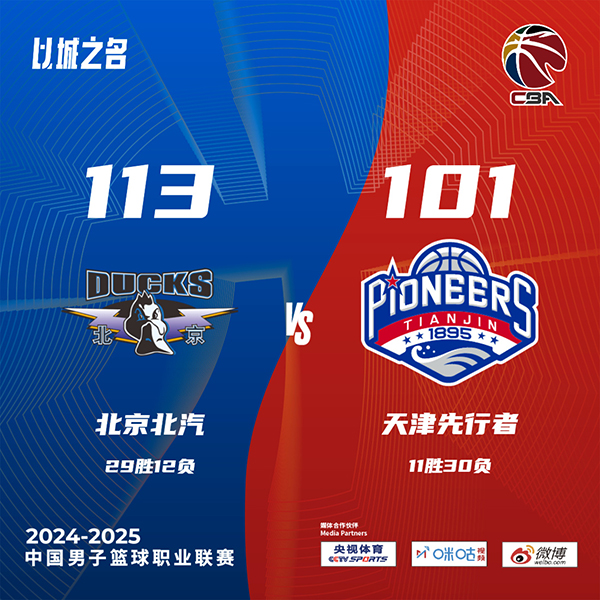 优直播讯北京时间3月17日讯 CBA常规赛今日继续开打,北京和天津迎来一场交手。北京目前豪取8连胜状态大热,天津则状态走低遭遇5连败。首节开局北京虽然占据主动但场面优势并不大,不过节末北京抓住对手哑火的机会送出8-2的攻势拉开8分领先;次节北京前期占优一度拉开12分的领先,但后半段天津这边詹姆斯詹姆斯砍下13分带队不断蚕食分差并带着6分劣势进入下半场,值得一提,上半场詹姆斯和林庭谦合计三分球10投8中。休息归来周琦开局不久送帽并在盖帽榜单上追平哈达迪并列第五;天津延续状态不断蚕食分差并在第三节末段命中两记三分完成反超;不过北京也在随后及时回暖送出跨节12-4的攻势夺回主动权,这之后北京稳住局面并在曾凡博的两记罚球中重新取得两位数领先奠定胜局。最终,北京击败天津取得9连胜,同时送天津6连败。