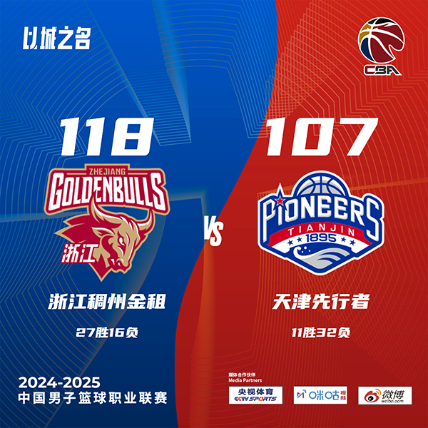 优直播讯 北京时间3月22日讯 CBA常规赛,浙江主场迎战天津。浙江26胜16负排在联赛第10,天津11胜31负排在第16。上半场,浙江率先发力,内外开花取得两位数领先,天津不断冲击内线努力追赶,浙江连中三分迅速回应,次节双方大打对攻,约克火力全开,连中三分带队保持优势,半场战罢浙江66-53领先天津。下半场,天津发起反击缩小分差,约克延续火力带队保持优势,末节两队继续对攻,浙江火力更猛不断扩大优势,杜伯超和王奕博发生口角双双吃T,杜伯超犯满离场。最终,浙江118-107轻取天津,主场过关。