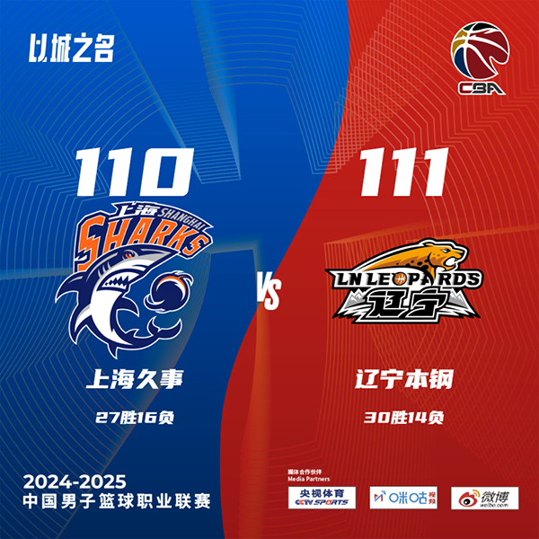 优直播讯北京时间3月23日,CBA常规赛上海久事主场迎战辽宁本钢,半场上海54-57辽宁,比赛还剩最后2分钟辽宁领先9分,随后上海反扑追至1分分差,最后3.3秒,辽宁张镇麟为避免上海犯规战术直接选择超远三分出界,留给上海0.5秒最后一攻后场发球洛夫顿空接出手弹框而出,最终辽宁111-110险胜上海。