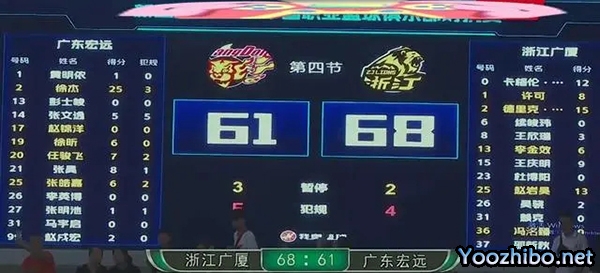 优直播讯 北京时间 9月16日讯 CBA热身赛,广东队61-68不敌广厦队。此役双方前三节你来我往陷入僵持,广东队稳扎稳打始终占优,并带着10分优势进入末节,但末节比赛形势风云突变,广厦单节27-10逆转对手。四节比分分别是(广东在前):19-13、19-17、13-11和27-10。