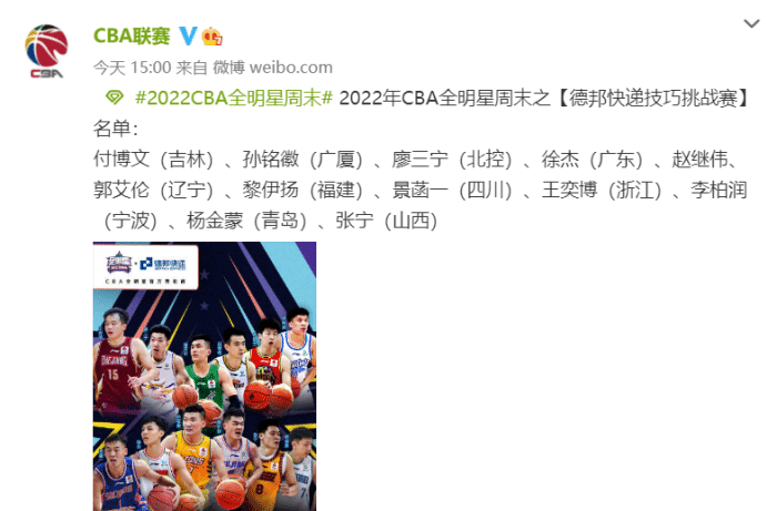 CBA全明星详细名单,郭艾伦徐杰对决技巧赛,胡明轩参加三分大赛