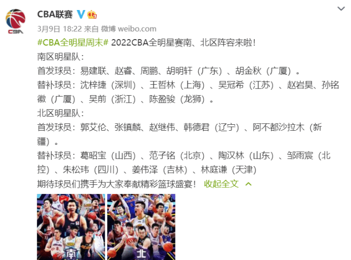 2022CBA全明星周末原本计划在佛山进行,后来改在青岛,又因为各种因素影响,最终改在了诸暨进行,比赛时间是12月1日到3日,也是在常规赛第二阶段开始前,各队都可以抵达诸暨,举办全明星赛更为方便。全明星赛的阵容早已确定,北区郭艾伦、赵继伟、韩德君、张镇麟和阿不都沙拉木领衔首发,南区易建联、周鹏、赵睿、胡明轩和胡金秋首发,这其中周鹏已经转会深圳,胡金秋有伤在身。山东男篮只有陶汉林进入北区替补阵容,他也是连续参加全明星的比赛。
