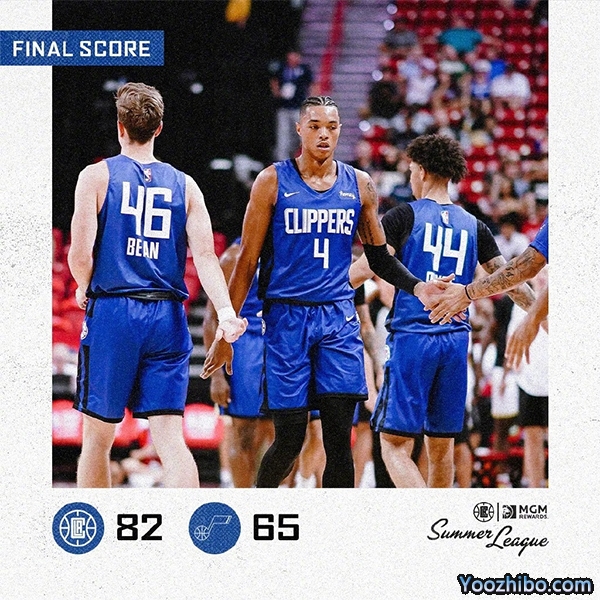 优直播讯 7月16日讯 NBA夏季联赛继续进行,快船对阵爵士。快船如愿得到了沃尔希望能补强1号位,在戈贝尔交易中赚得盆满钵满的爵士想在米切尔身上得到更多。一开场,双方互送进攻高潮,快船持续发力领先7分结束首节。次节上来,爵士一波11-3完成反超,快船回敬8-0的攻势,博尔马罗挺身而出连得8分,半场战罢快船39-37领先2分。易边再战,爵士持续反击,完成15-4的攻击波反超比分,三节打完爵士反超6分。第四节,爵士突然哑火,快船轰出24-4的进攻狂潮锁定胜局,最终,快船依靠末节的出色发挥击败对手取得胜利。