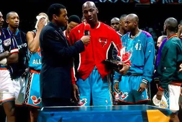 1996年NBA全明星赛是第46届全明星赛。西部明星队以118-129战胜东部明星队。芝加哥公牛队的迈克尔乔丹获得了比赛的MVP。格兰特-希尔以1,358,804票当选票王。阵容名单:东部首发阵容为:斯科特-皮蓬、格兰特-希尔、沙奎尔-奥尼尔、迈克尔-乔丹、安芬尼-哈达威
