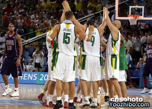 北京时间2004年8月22日凌晨,不可一世的美国梦六队在雅典再遭羞辱,最多曾领先10分的他们先胜后负以90-94被立陶宛队掀翻,在雅典奥运男篮小组赛前四战中竟然仅取得两胜两负的战绩。而立陶宛队则四战全胜提前锁定了B组第一的位置。