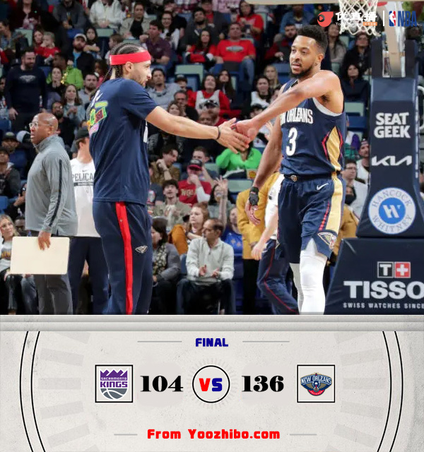 优直播2月6日讯 今日NBA常规赛,鹈鹕坐镇主场迎战国王,鹈鹕上一场刚刚终结十连败,目前以27胜27负排名西部第十,国王则是29胜22负高居西部第三。本场福克斯和英格拉姆缺阵。比赛开局,国王首发进攻状态不佳,鹈鹕很快建立两位数的领先优势,替补上场后国王稍稍迫近比分,次节鹈鹕延续进攻状态,外线多点开花,国王无法在进攻端匹配,鹈鹕一度打出一波11-0的进攻高潮,分差来到20分,半场结束,鹈鹕70-52领先。易边再战,国王依然没能打开进攻状态,鹈鹕延续场上优势,一举将分差拉开到30分。比赛很快来到第四节,两队交替得分,比赛很快失去悬念,进入垃圾时间,最终鹈鹕主场136-104大胜国王,取得两连胜。