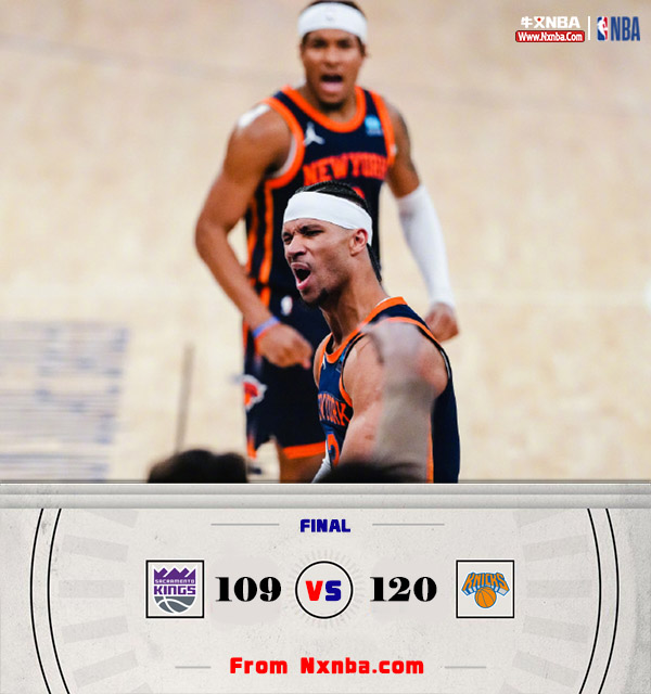 优直播4月5日讯 NBA常规赛,尼克斯今日迎战国王,前者近来情况不佳遭遇三连败,后者则是取得两连胜,此役蒙克和阿努诺比缺战。比赛上来,两队短暂拉锯后国王一波小高潮将分差拉开到了两位数,整个第一节尼克斯只拿到20分,次节国王迅速将分差扩大到二十分以上,但之后他们的命中率急剧下滑,尼克斯在布伦森的带领下打出一波16-2的攻势,半场结束时国王领先8分;下半场回来,尼克斯继续发起反扑,迪文岑佐节末外线连续出手成功帮助球队实现反超,末节双方一直保持拉锯,但随后哈特和布伦森联手打出一波13-0的攻势拉开分差,最终尼克斯21分逆转国王结束三连败。