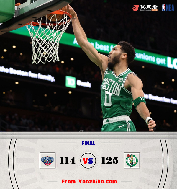 优直播1月12日讯 今日NBA常规赛凯尔特人主场迎战鹈鹕,此前绿军已经取得三连胜,29胜12负稳居联盟第一,鹈鹕则是以25胜16负位列西部第三。本场锡安继续缺阵,斯玛特和罗威也将缺席比赛。首节上来,两队即陷入拉锯战,交替取分,双方进攻手感都很火热,在外线形成对飙,次节回来鹈鹕陷入得分荒,绿军趁机打出一波9-0取得两位数领先,随后鹈鹕多点开花迫近比分,麦科勒姆上半场手感出色,三分7投6中拿下22分,半场结束凯尔特人64-58领先。易边再战,双方依旧是交替得分,但鹈鹕始终没能反超,节末鹈鹕效率下降,绿军再次领先到两位数,布朗手感爆棚,单节得到18分。末节绿军稳扎稳打继续拉开分差,随着时间流逝,比赛逐渐失去悬念,最终凯尔特人主场125-114力克鹈鹕,取得四连胜。
