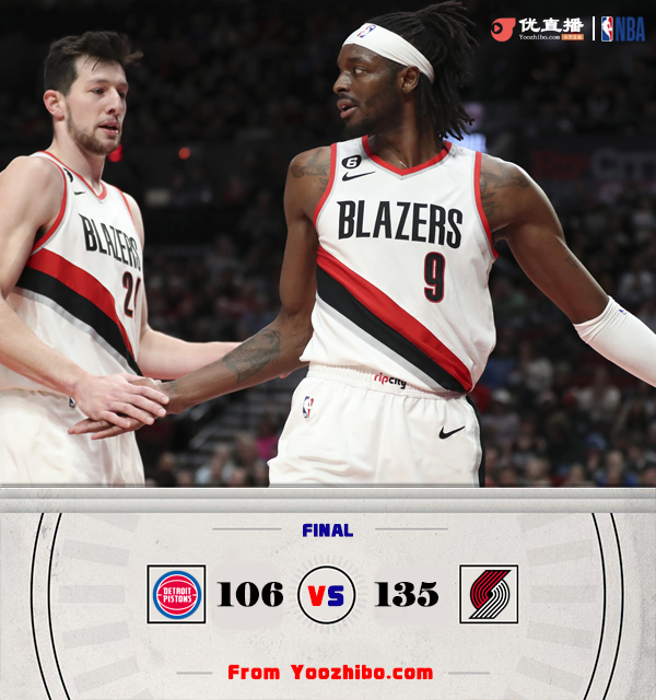 优直播1月3日讯 NBA常规赛,开拓者主场迎战活塞。开拓者目前西部第八,活塞东部垫底。上半场,开场阶段双方势均力敌,比分交替领先,开拓者内外开花打出8-1取得优势,活塞强攻内线连续拿分,但此后却突然断电,格兰特独得8分引领球队15-0的进攻高潮以61-52领先结束上半场。下半场,开拓者牢牢占据场上主动,格兰特继续高效输出带队将分差拉开到20分以上,活塞大势已去无力回天。最终开拓者大胜活塞,主场过关。