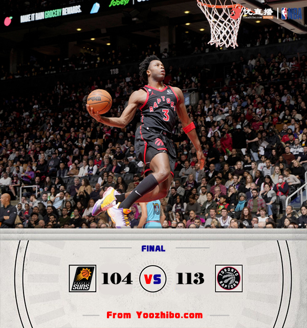 优直播12月31日讯 NBA常规赛,太阳客场挑战猛龙。太阳目前西部第六,猛龙在东部倒数第五。布克和范弗里特都不打。上半场,开场阶段双方势均力敌,比分咬得很紧,猛龙持续发力打出12-3取得领先,太阳内外开花回敬13-2反超比分,猛龙连中三分,半场战罢猛龙53-51领先2分。下半场,猛龙占得先机打成13-4的攻势取得两位数领先,保罗得分助攻一肩挑带队追赶,末节双方争夺陷入白热化,关键时刻猛龙内外开花连续拿分锁定胜局。