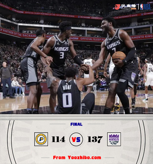 优直播112月1日讯 NBA常规赛,国王今日迎战步行者,前者三连败后暂列西部第六位,后者上场比赛则是绝杀湖人排名东部第四,此役双方不少球员都是面对旧主。比赛上来,双方短暂拉锯后国王开始发力取得领先,分差也是拉开到了两位数,次节两队展开拉锯,分差并没有发生变化,半场结束时步行者落后14分;下半场双方展开对攻,但国王明显占据了上风,单节狂砍44分将分差继续扩大到二十分以上,之后的比赛步行者没有再获得任何机会,最终国王大胜步行者结束三连败。
