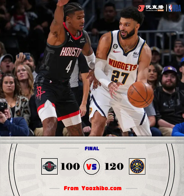 优直播12月1日讯 NBA常规赛激战正酣,火箭时隔两天再战掘金,掘金近期迎来三连胜稳居西部第二,与排名第一的太阳仅有1个胜场的差距,火箭上场输球后继续西部垫底。比赛开始后掘金延续火热状态,多点开花的他们轰出13-2梦幻开局,火箭进攻随后回暖一度缩小分差,但末段他们再次进攻断电,掘金一波14-3彻底拉开比分,首节结束时掘金确立20分优势,次节回来,火箭找到状态接连取分,但穆雷连中三分予取予求,布鲁斯-布朗续上火力,半场战罢,掘金已经领先27分。下半场,小凯文-波特、申京和杰伦-格林联手追分,但掘金稳扎稳打始终保持大比分,三节结束后掘金96-72牢牢占优,末节上来,火箭无法打出追分高潮,比赛失去悬念,最终掘金大胜对手。