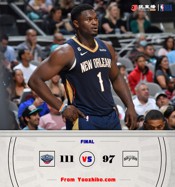 优直播10月10日讯 NBA季前赛,马刺对阵鹈鹕。马刺想要得到文班亚马的心已经路人皆知,鹈鹕这边续约麦科勒姆和锡安后继续保持一定的竞争力。一开场,鹈鹕率先发力取得领先,马刺奋力反击,首节结束鹈鹕领先4分。第二节,双方继续缠斗,比分咬得很紧,半场战罢鹈鹕50-44领先6分。下半场,马刺一度将比分扳平,但此后突然断电,鹈鹕一波14-0的进攻高潮领先21分进入末节。第四节,双方轮换阵容旗鼓相当,鹈鹕轻松将优势保持到了最后。最终,鹈鹕111-97轻取马刺,顺利过关。