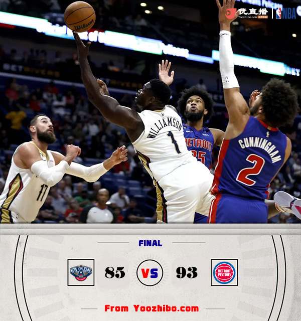 优直播10月8日讯 NBA季前赛继续进行,鹈鹕对阵活塞。鹈鹕迎回了更加精壮的锡安,新赛季值得期待。活塞这边休赛期引进多位实力派强援,康宁汉姆也得到了迅速成长。英格拉姆和麦科勒姆本场比赛不会出战。一开场,活塞率先发力连续打出进攻高潮取得领先,鹈鹕回敬10-0的攻势在首节结束时反超1分。次节上来,两队大打对攻,鹈鹕持续发力内外开花,以59-51领先进入下半场。易边再战,锡安连得6分带队取得两位数优势,活塞奋力反击连中三分一度追赶,鹈鹕一波6-0带着6分优势结束第三节。最后一节,双方继续缠斗,鹈鹕始终保持微弱领先,康宁汉姆得分助攻一肩挑带队追赶,西布龙关键上篮得手,最终,鹈鹕险胜活塞,取得胜利。