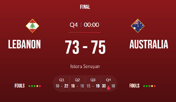 黎巴嫩:阿拉基28分7篮板5助攻,海达尔23分9篮板,达维奇7分7篮板4助攻2抢断,约克钦3分4篮板3助攻,梅泽尔2分2篮板。