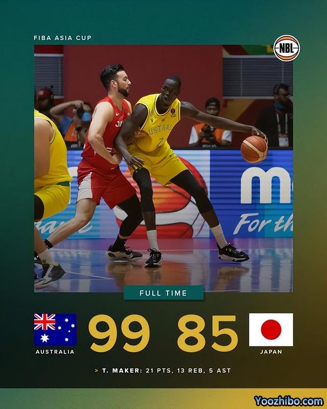 优直播讯:北京时间7月21日下午18:30,2022年男子篮球亚洲杯1/4决赛资格赛,日本男对阵澳大利亚男篮。上半场,澳大利亚内线外线表现都非常出色,并不断拉开领先优势,半场比赛结束,澳大利亚队49-34领先日本队15分;下半场,两队外线远投飚分,全场结束,澳大利亚队99-85击败日本队,杀进半决赛。两队狂轰36个三分,日本队命中了20个三分!