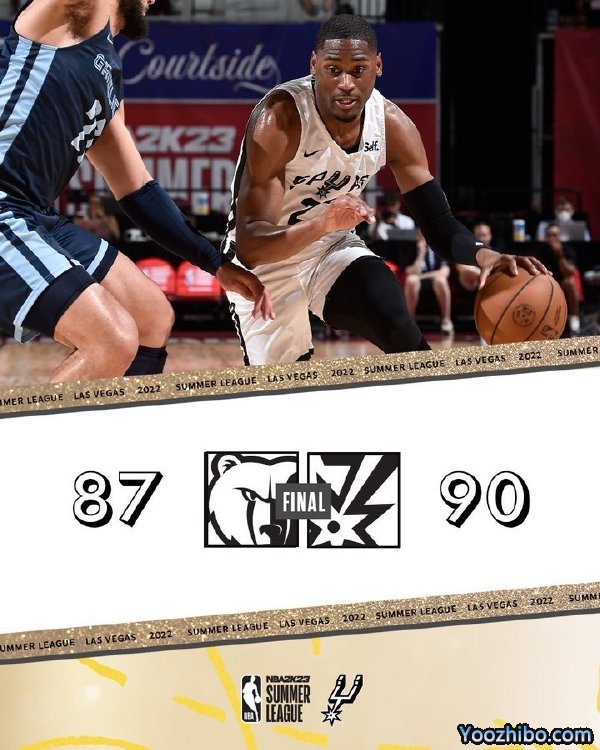 优直播讯7月17日讯 拉斯维加斯夏季联赛今日继续开打,马刺和灰熊迎来一场交手。上半场争夺两支球队状态相当,虽然首节灰熊率先一波10-0的攻势发动进攻,但马刺很快做出回应迅速追赶上来,不过马刺虽然能咬住比分且多次追平比分,但始终无法反超导致局面稍显被动,最后时刻豪尔和韦斯利的三分进球帮助马刺抹平比分进入下半场。下半场马刺抢占先机在第三节取得久违的领先,而灰熊开局糟糕的表现也直接导致落后9分进入第四节;不过第四节的灰熊迅速组织反击,本场状态出色的“小胖”洛夫顿开场连拿9分,灰熊用一波14-2的进攻高潮一举夺回主动权,不过面对末节独砍15分险些带队翻盘的洛夫顿,马刺这边也有自己的超级英雄,布兰汉姆末段轰进4记三分砍下14分带队反超并守住胜利。最终,马刺惊险击败灰熊结束4连败并迎来夏季联赛首胜。