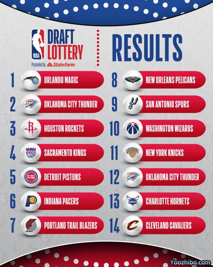优直播讯 北京时间5月18日讯 2022年NBA选秀抽签仪式今日进行,根据常规赛战绩,火箭、魔术和活塞、雷霆(本身12.5%+快船签1.5%)均有14%的概率抽中状元签,步行者(10.5%)也有超过10%的概率。其中魔术抽中状元签,雷霆抽中榜眼签,火箭抽中探花签,湖人的8号签最终归属鹈鹕。最终,魔术喜获状元签!雷霆获得榜眼、火箭获得探花、国王第四。