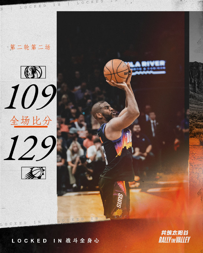 优直播5月5日讯 NBA季后赛西部半决赛激战正酣,上场在主场先声夺人的太阳继续迎战独行侠,比赛开始后太阳率先找到状态打出9-0开局,东契奇及时发力单节独得14分,末段独行侠回敬7-0小高潮,首节结束时太阳领先4分,次节回来,丁威迪和贝尔坦斯连中三分,独行侠打出10-0攻击波一举反超,中段太阳内外结合紧咬比分,东契奇连中3记三分稳住局势,半场战罢,独行侠反超2分。易边再战后布克连得8分率队重新占优,中段双方你来我往陷入僵持,保罗跳投稳稳命中,约翰逊联手沙梅特续上火力,三节结束后太阳再次确立6分优势,末节决战,独行侠开局阶段继续追分,但中段他们进攻突然哑-火,保罗和布克先后取分接管比赛,太阳轰出17-2攻击波彻底拉开比分,独行侠选择早早收兵,比赛提前失去悬念,最终太阳129-109大胜独行侠,大比分2-0领先对手。