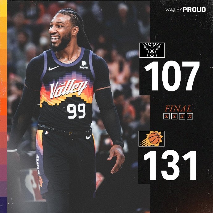 优直播2月11日讯 NBA常规赛,太阳今日迎战雄鹿,前者三连胜后继续高居联盟榜首,后者同样是取得四连胜暂列东部第二位。比赛上来太阳进入状态较快,一波6-0完美开局,不过雄鹿随后就将比分追了上来,两队在很长的时间里都保持拉锯,次节雄鹿的命中率开始下降,尤其是在节末被太阳再次打出攻势拉开分差,半场结束时雄鹿落后8分。易边再战,太阳已经完成占据了场上的主动,分差也在末节突破了二十分,比赛彻底失去悬念,最终太阳大胜雄鹿,迎来四连胜的同时也终结了后者的四连胜。