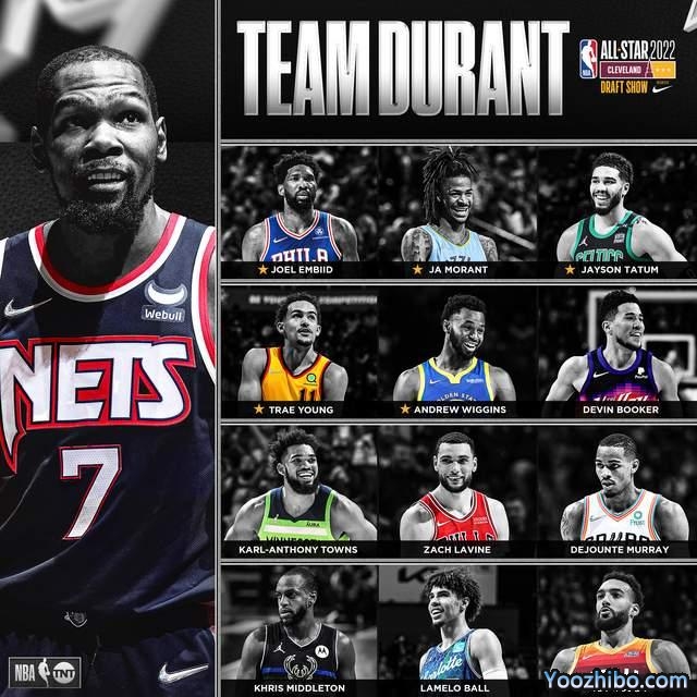 以下为2022年全明星赛勒布朗队与杜兰特队名单(按选人顺序)——