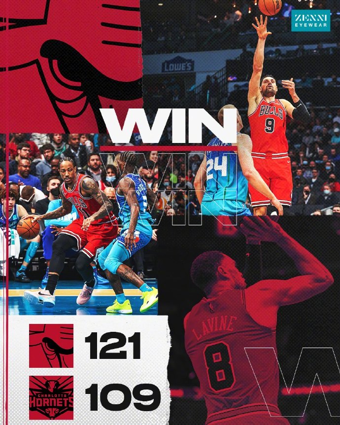 公牛(34-21):德罗赞36分5篮板4助攻,拉文27分7篮板5助攻,怀特15分3篮板3助攻,武切维奇18分15篮板8助攻3封盖,布朗8分4篮板4助攻,希尔6分2篮板。