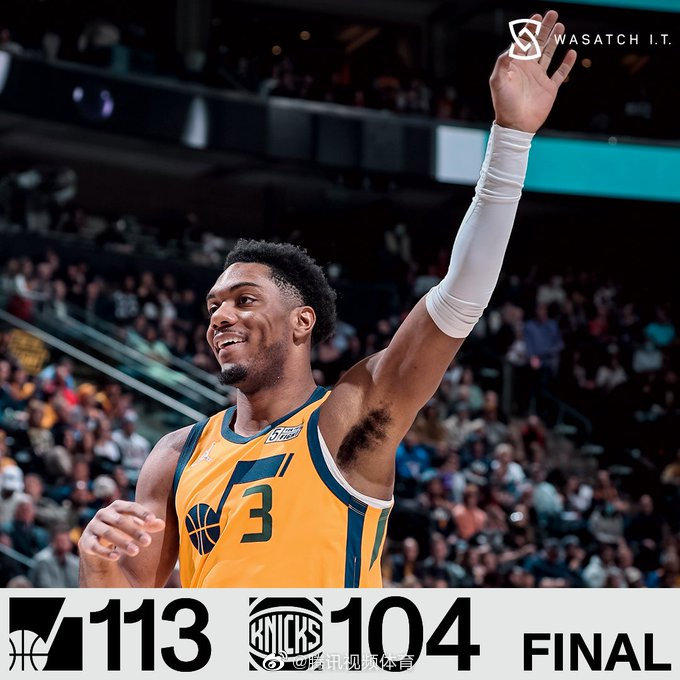 优直播2月8日讯 NBA常规赛继续进行,爵士主场迎战尼克斯,爵士目前一波2连胜排在西部第4位,而尼克斯则状态不佳,2连败暂列东部第12位,本场戈贝尔继续缺战。开局尼克斯进入比赛状态较快,由于戈贝尔缺阵爵士内线被疯狂针对,尼克斯也打出攻击波建立优势,但末段爵士抓住尼克斯得分荒成功回应小高潮并追平比分,次节米切尔终于找到手感,里突外投为爵士打出小高潮并反超比分,随后双方互相攻击内线并造杀伤,比分也是交替领先,节末康利的不错发挥还是帮助爵士领先2分。第三节爵士率先领先到双位数,但随后外线连续打铁突然陷入长达6分多钟的得分荒,尼克斯抓住机会多点开花打出24-2超级进攻波一举建立领先,节末爵士依靠三分紧急止血,末节双方手感都有下滑,爵士挑战成功后接连扔进三分开始掌握主动权,尼克斯多次追分反超机会把握不住,米切尔发力杀内线帮助爵士重新领先至双位数,最终爵士险胜尼克斯,拿到3连胜的同时送给对手3连败。
