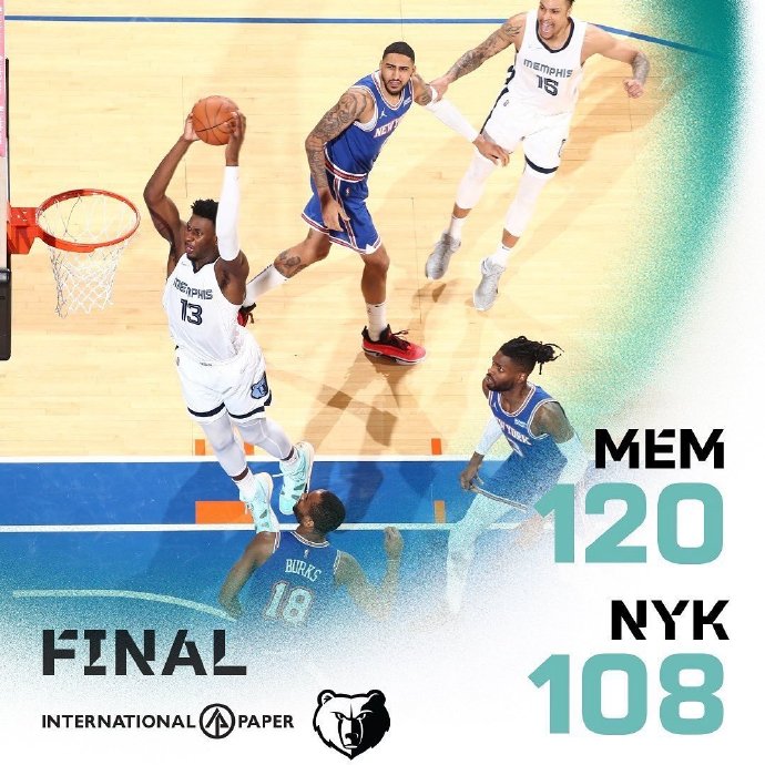 优直播2月3日讯 NBA常规赛,尼克斯今日迎战灰熊,前者上场比赛大胜国王排名东部第十一位,后者则是惜败76人暂列西部第三位。比赛上来灰熊就率先进入状态取得领先,虽然尼克斯及时调整将比分追至11-11平,但在首节末段灰熊还是将分差拉开到了两位数,之后的比赛尼克斯一直处于落后,半场结束时灰熊领先12分。易边再战,尼克斯虽然多次发起反扑,分差也是回到个位数,但始终没能获得反超的机会,兰德尔更是在最后时刻吃到个人第二次技犯被驱逐,最终灰熊轻取尼克斯避免连败。