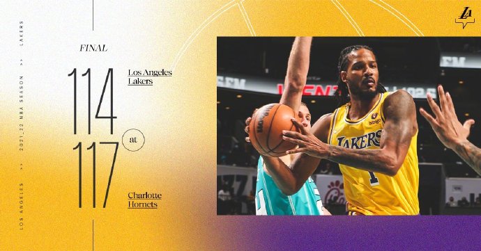 湖人(24-26):威少35分4板5助、安东尼19分5板5助2断2帽、里夫斯16分8板3助、贝兹莫尔13分、艾灵顿9分5板、S-约翰逊4分5板、小乔丹4分7板、布拉德利5分2板2断、塔克6分5板、阿里扎3分2助。