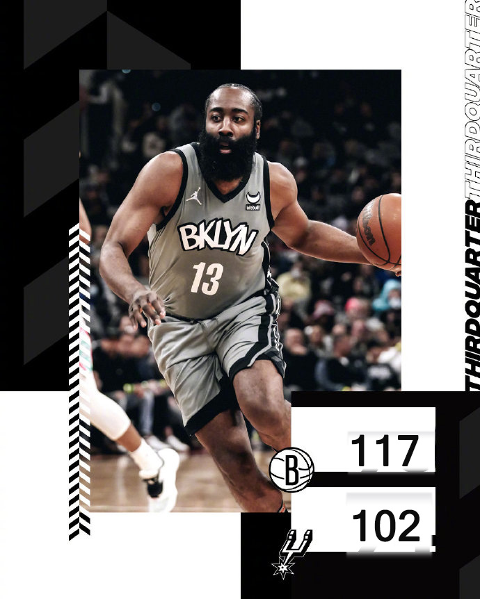 优直播1月22日讯 NBA常规赛继续进行,篮网客场挑战马刺。篮网近期状态不佳,杜兰特也遭遇伤病,虽然仅能够出战客场,但欧文的回归绝对是雪中送炭。马刺在遭遇一波连败之后稍有回暖,但依然仅仅排在西部倒数第四。本场比赛米尔斯和阿德迎战旧主。一开场,哈登和欧文联手带队帮助篮网开局14-5领先,马刺回敬7-0的攻势一举反超,首节结束马刺领先2分。第二节,两队依然打得非常激烈,比分交替领先,哈登得分助攻一肩挑,马刺多点开花不甘示弱,半场战罢马刺51-50领先1分。下半场,米尔斯连得5分打破得分荒,哈登也连拿8分,马刺不急不躁连续篮下得手一度夺回优势,篮网打出6-0的攻势带着5分领先进入末节。第四节,哈登和欧文合力拿分帮助篮网取得两位数领先,并且稳扎稳打将优势保持到了最后。最终,篮网力克马刺,登顶东部榜首。