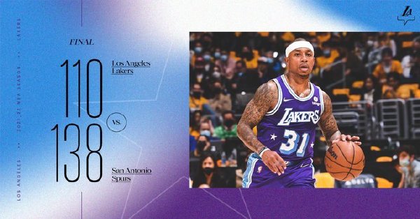 优直播12月24日讯 NBA常规赛继续进行,湖人主场迎战马刺,湖人本赛季可算是命途多舛,3连胜的大好势头在浓眉受伤后戛然而止,目前已经3连败暂时排名西部第6,马刺则是排在西部第11位,本场比赛也是以斯台普斯中心的谢幕战,对于湖人球迷来说意义非凡。开局马刺展现出不错的外线手感,而湖人则是詹姆斯攻防两端一人扛起球队,节末湖人换上轮转阵容后由于身高的天然劣势被马刺拿到9分领先,次节詹姆斯继续里突外投帮助湖人追分,无奈于其他球员实在不给力,小托马斯和艾灵顿防守端一直被针对,马刺内线优势巨大保持11分领先。易边再战,马刺进攻端还是保持不错命中率,分差一直在10分以上,而湖人进攻端继续挣扎,节末威少连续发力虽然单节砍下17分,但湖人还是落后了13分,末节詹姆斯带领湖人多次试图反击追分,但外线手感不开终归没有成功,反倒是沃克率领马刺将分差拉开至20分以上,最终马刺轻取湖人,送对手4连败。