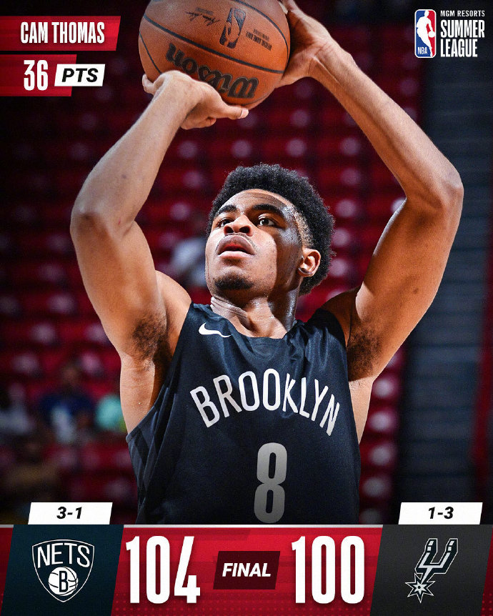 篮网:托马斯36分,A-约翰逊13分14板,鲍登14分,泽加罗夫斯基12分3板,夏普10分5板,盖茨6分4板。