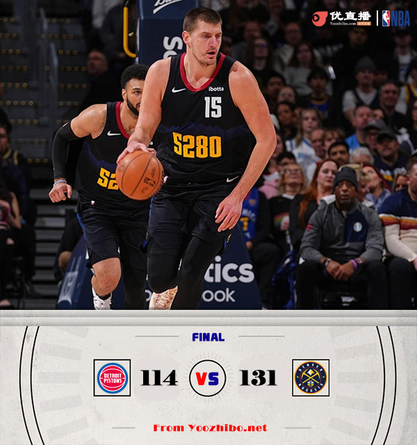 优直播1月8日讯 NBA常规赛继续进行,掘金主场迎战活塞,掘金上场不敌魔术,目前25胜12负继续排在西部第三,活塞近期遭遇三连败后战绩来到3胜32负,继续排名东部垫底。首节一上来双方你来我往比分紧咬,穆雷火力全开单节独得10分,约基奇专注组织首节零出手,活塞连续杀伤内线给予回应,首节结束时掘金领先2分,次节回来,康宁汉姆左膝扭伤提前伤退,穆雷延续火力单节再度贡献14分,率领掘金连续发力扩大优势,半场战罢,掘金继续领先8分,易边再战后沃特森突然爆发连续取分,掘金单节狂轰43分一举拉开比分,三节结束后掘金已经领先23分,末节上来,掘金逐渐换上替补阵容,活塞主力阵容一度缩小分差,但掘金迅速回应终结悬念,最终掘金131-114大胜活塞送对手4连败。