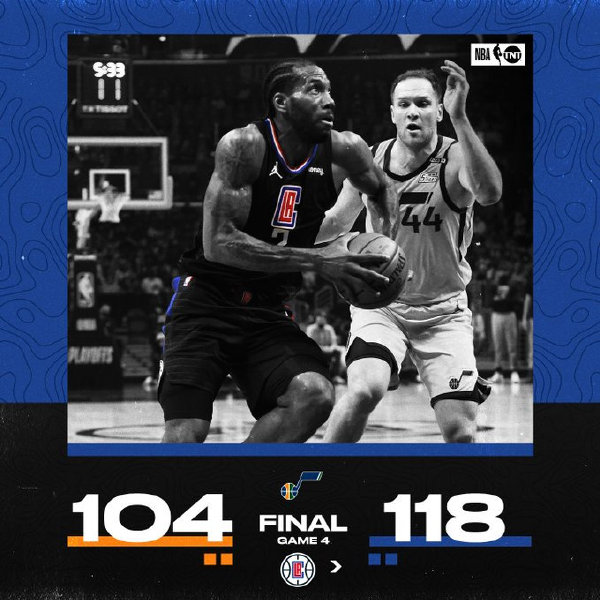 优直播6月15日讯 快船今日坐镇主场迎来和爵士的G4争夺,上一场爵士不敌快船未能夺得赛点。首节之争快船做足准备上来就是万箭齐发下起三分雨,系列赛前三战三分总计16投1中的莫里斯贡献三记三分,他和小卡首节联手攻下23分,而爵士这边手感冰冷无法匹敌对手,首节他们就落后快船17分。次节之争米切尔站出来命中4记三分独砍17分,奈何快船这边攻势如潮,双核外加莫里斯半场合力贡献56分,快船带着24分的领先进入下半场。易边再战的爵士终于在进攻端占据上风,他们抓住快船进攻端回落的机会一度追至14分,奈何对手总有爆发的时候,节末快船回敬7-0的攻势重新拉开比分掌控比赛。巨大的分差让末节早早失去悬念,纵使爵士仍不放弃一度将分差追至10分,但时间不足以他们上演逆转。最终,快船主场再胜爵士连扳两场,总比分上2-2战成平手。