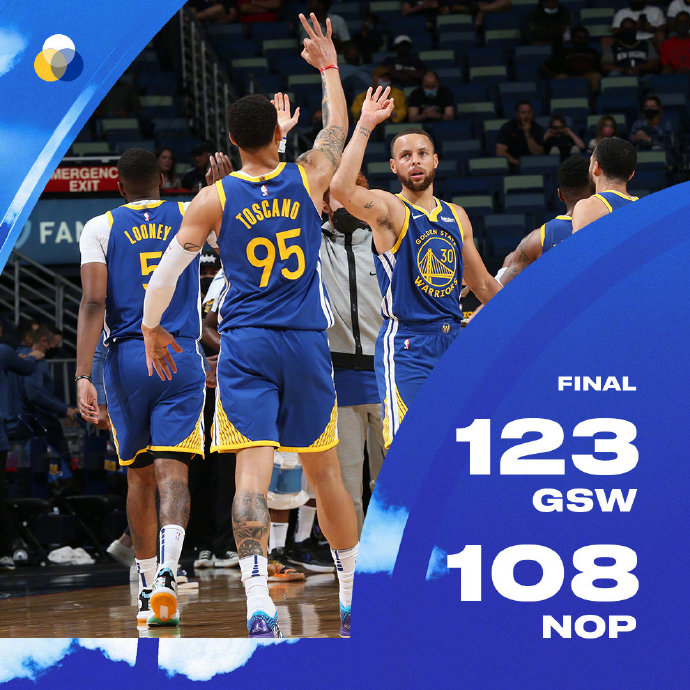 优直播5月4日讯 鹈鹕今日坐镇主场迎来勇士的挑战,勇士凭借上一场大胜火箭的胜利及时止住颓势并继续追赶季后赛末班车,鹈鹕目前无欲无求不过近期4战3胜表现相当不错。首节之争勇士多点开花用一波12-1的攻势拿到完美开局,节中面对鹈鹕的追赶,“库三节”的主导者将火热手感提前至首节,库里这一节轰下17分,勇士节末再送18-7的攻势确立起18分领先,次节勇士仍然主导比赛,次节打完11分钟的时候仍然手握20分的领先,不过鹈鹕最后时刻自我救赎,他们依靠一波8-0的攻势将分差缩小至12分进入下半场。休息归来面对鹈鹕的反扑,“库三节”从不迟到,库里这一节再度轰下15分并送出3次助攻,勇士从优势一度被缩小至6分的情况下重新拉开两位数领先牢牢控制比赛。末节维金斯站出来连拿8分为勇士奠定一个好头,勇士稳守巨大领先没有给鹈鹕任何机会。最终,勇士客场大胜鹈鹕拿下比赛。