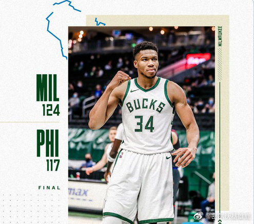 雄鹿(36-22):字母哥27分15篮板6助攻、米德尔顿24分1篮板5助攻、大洛佩兹16分4拉板1助攻2盖帽、霍勒迪12分4篮板11助攻、波蒂斯23分4篮板、康诺顿10分5篮板