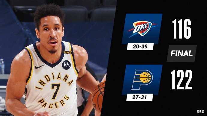 优直播4月22日讯 NBA常规赛,3连败的步行者坐镇主场迎战已经11连败的雷霆,排名东部第9的步行者目前落后排名第8的黄蜂2个胜场,若想更进一步就必须拿下雷霆,萨博尼斯和特纳两大内线缺席了本场比赛。首节步行者的小个阵容火力全开,单节飚中8记3分轻松化解了雷霆的10-0攻势,次节麦康纳继续扮演“球队大脑”角色,不到7分钟上场时间就送出8次助攻,两队大打对攻战分差始终维持在10分左右。第三节雷霆一度依靠贝兹利和布朗的内线优势打出11-0的攻击波将分差缩小到1分,但布里塞特却用职业生涯最高光表现帮助步行者渡过难关,末节雷霆双塔再度发威,无奈他们无法阻挡勒韦尔和布里塞特连续的快打旋风,步行者一波13-5锁定胜局。最终步行者主场122-116击败雷霆,送给对手12连败。