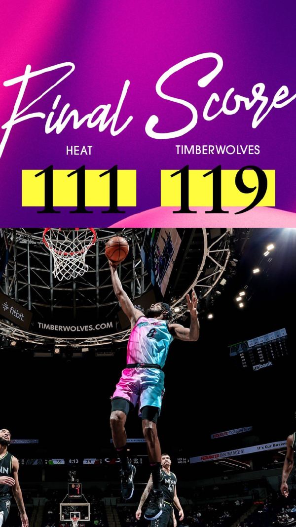 优直播4月17日讯 NBA常规赛,热火客场挑战森林狼。两支球队目前均遭遇了两连败,森林狼在缺少唐斯的情况下,森林狼两战均是大比分输球,但状元郎爱德华兹成为了新秀里首个拿到1000分的球员。热火在对阵太阳和掘金两支劲旅的比赛中毫无抵抗之力,目前已经跌到了东部第七,面对弱旅,他们急需一场胜利。本场唐斯迎来复出。一开场,巴特勒连拿9分帮助热火取得领先,森林狼连中4个三分缩小分差,热火持续发力保持优势,热火领先11分结束首节。次节比赛,热火半节仅得4分,森林狼轰出一波20-4反超5分,阿里扎连续命中三个三分个人半场得到16分,双方打成61平进入下半场。易边再战,双方打得难解难分,比分交替领先,巴特勒和德拉季奇联手拿到10分帮助热火领先5分结束第三节。末节争夺,热火状态全无,森林狼越战越勇取得两位数领先。唐斯虽然六犯离场,但热火没能挽回败局。最终,森林狼战胜热火,结束两连败的同时送给对手三连败。