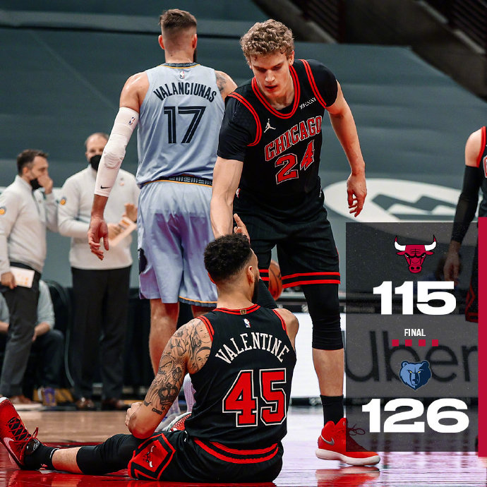优直播4月17日讯 NBA常规赛灰熊对阵公牛,刚开场两队就连续在外线对飚三分,虽然灰熊一度取得领先,但公牛马上追上比分。第二节轮到公牛率先发力掀起攻势,灰熊进攻内线再度追平比分,场上局势仍旧胶着,上半场结束时两队打成57平。下半场回来虽然公牛进攻仍旧表现不错,武切维奇频频砍分,但他们防守不佳被灰熊打出高潮拉开比分,第四节灰熊将领先优势稳定在两位数,公牛无力回天,最终灰熊126-115送给公牛5连败。