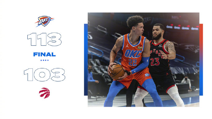 优直播3月31日讯 3连败的猛龙与3连败的雷霆不期而遇,此役雷霆的亚历山大、波库舍夫斯基和猛龙的洛瑞均高挂免战牌。首节猛龙下起一波三分雨,阿奴诺比、特伦特和西亚卡姆的连续六记三分率队打出17-3的攻击波早早便确立了领先优势,雷霆也不甘示弱,他们很快就回敬一波15-3缩小分差,次节猛龙的三分雨仍在继续,雷霆则靠着摩西-布朗、罗比在内线的优势紧咬比分。下半场雷霆三军用命终于反超了比分,猛龙三分命中率急剧下滑,再加上内线篮板被完爆(全场输了29个),很快便陷入被动局面,末节米哈伊柳克用连续的高光表现带领球队扩大分差,猛龙则是手感全无,单节仅得到14分,最终雷霆主场以113-103力克猛龙,终结自己三连败的同时也送给猛龙四连败。