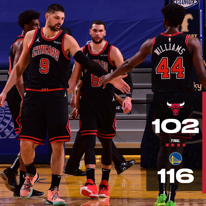 公牛(19-26):武切维奇21分9板6助、帕特里克-威廉姆斯14分6板4助、马尔卡宁13分6板、拉文12分4板4助、萨托兰斯基14分8助、赛迪斯-杨10分4板2助、泰斯6分。