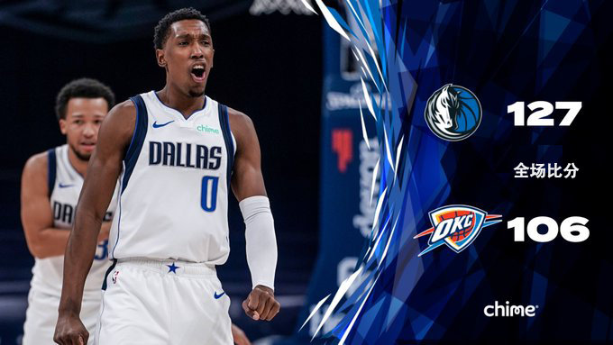 优直播3月30日讯 雷霆今日坐镇主场迎战独行侠的挑战,东契奇和波尔津吉斯伤停后双双回归。面对几乎全是新秀或者新人的雷霆,独行侠上半场优势并不明显,虽然首节他们便取得9分领先,但随着雷霆的替补阵容爆发,独行侠的优势很快被抹平殆尽,不过独行侠节末也在替补阵容的爆发中重新打开局面,小哈达威最后时刻连砍8分带队拉开比分并取得8分领先进入下半场。第三节雷霆抢开局并迅速控制比赛,东契奇联手波尔津吉斯开局连拿10分迅速确立起两位数的领先,节末独行侠虽然遭遇接近4分钟的得分荒,但雷霆没能抓住机会攻势同样不佳,独行侠感受不到任何压力并带着17分的领先进入第四节。末节开局独行侠早早杀死比赛悬念,开局一波14-4的进攻将优势拉大至27分早早锁定胜局。最终,独行侠客场兵不血刃轻取雷霆结束2连败。