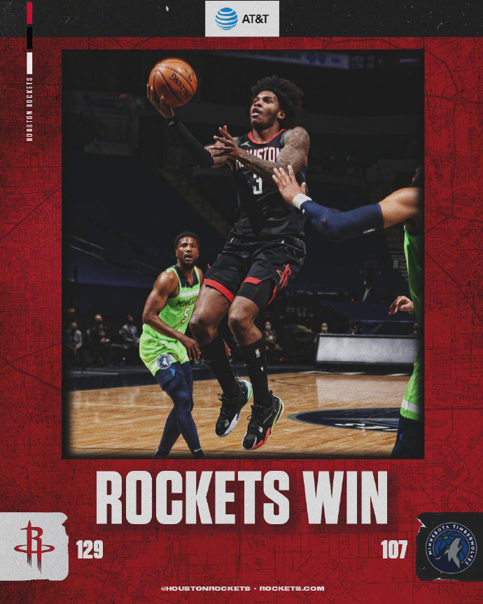优直播3月28日讯 NBA常规赛森林狼主场对阵火箭,刚开场火箭依靠小波特和奥利尼克联手拿分,森林狼则外线不断命中三分,不过火箭再在第一节后半段打出攻势建立领先。第二节上来小波特仍旧状态火热频频砍分,森林狼进攻状态低迷,火箭趁势继续拉大分差,斯特林-布朗连续命中4个三分,上半场火箭74-48大比分领先。下半场回来火箭仍旧保持不错的手感,虽然森林狼略为缩小分差,但第四节火箭再次打出攻势拉开比分,比赛完全失去悬念,最终火箭129-107大胜森林狼。