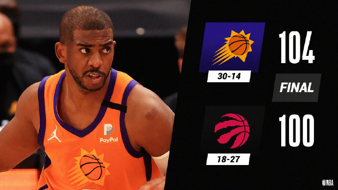 太阳(30-14):艾顿19分9板、保罗19分6板8助、布克16分6板、布里奇斯11分7板、克劳德8分5板4助。