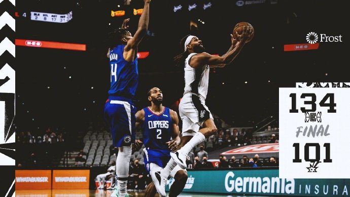 优直播3月25日讯 NBA常规赛,马刺坐镇主场迎战快船,马刺最近2连败已经掉落至西部第7位,快船则是2连胜上升到西部第3位,本场比赛盖伊缺战。首节快船三分手感火热,小莫里斯独中4记三分,末段马刺一波小高潮追回一些分差,快船还是领先12分,次节双方提高防守强度命中率都有所下降,分差围绕在10分左右,快船凭借最后1分钟的进攻波半场结束继续领先14分。易边再战,快船进攻状态一直不错,替补的三分手感帮助快船三节结束将分差扩大至18分,末节快船牢牢守住20分的优势,中段双方就换上替补练兵,最终快船大胜马刺,拿到3连胜的同时送给对手3连败。