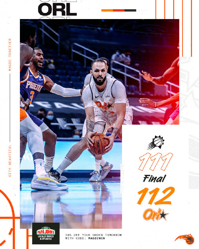优直播3月25日讯 NBA常规赛,魔术主场迎战太阳,前者最近状态一般2连败已经排在东部倒数第二位,后者则是3连胜已经跃居到西部次席,双方实力还是比较悬殊。开局阶段太阳凭借开局的小高潮建立领先,随后魔术连续的三分帮助追近分差,布克站出来连续中投帮助太阳首节结束领先8分,次节魔术也打出一波进攻波抹平分差,双方展开拉锯战,半场结束双方打平。下半场回来,太阳一波11-0重新建立领先优势,武切维奇苦苦支撑着魔术进攻帮助追分,太阳带领5分优势进入末节,末节魔术打出10-4开局再次反超比分,随后双方展开胶着拉锯战,保罗展现老将风采依靠经验连续取分帮助太阳咬住比分,最后时刻比分交替领先,富尼耶上篮绝杀帮助魔术险胜太阳,终结对手3连胜。