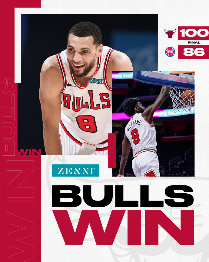 公牛(19-22):拉文18分3篮板、马尔卡宁16分8篮板、帕威10分7篮板、阿西迪亚科诺9分2助攻、瓦伦丁9分3篮板2助攻、赛迪斯-杨8分8篮板4助攻3抢断、萨托兰斯基8分9助攻3抢断2篮板、加福德8分11篮板2盖帽、怀特7分4助攻3篮板2抢断;
