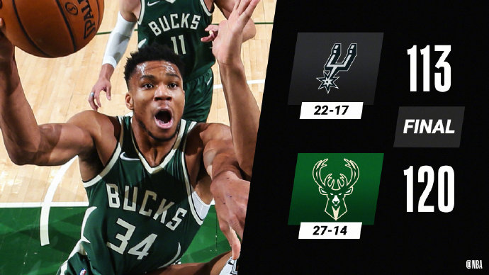 雄鹿:字母哥26分8板15助、米德尔顿23分5板、霍勒迪21分5板、迪温岑作12分13板、洛佩兹11分4板、康诺顿11分、福布斯10分、波蒂斯6分